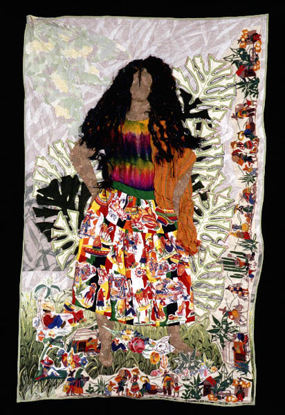 Vintage drapery fabric, linens, hand-dyed fabrics, hand applique, machine pieced and quilted
