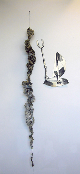 Dye, mulberry paper, thread, rag paper, india ink, watercolor