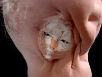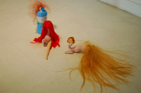 Dyeing & Sewing on cotton, plastic doll, stop-motion photography